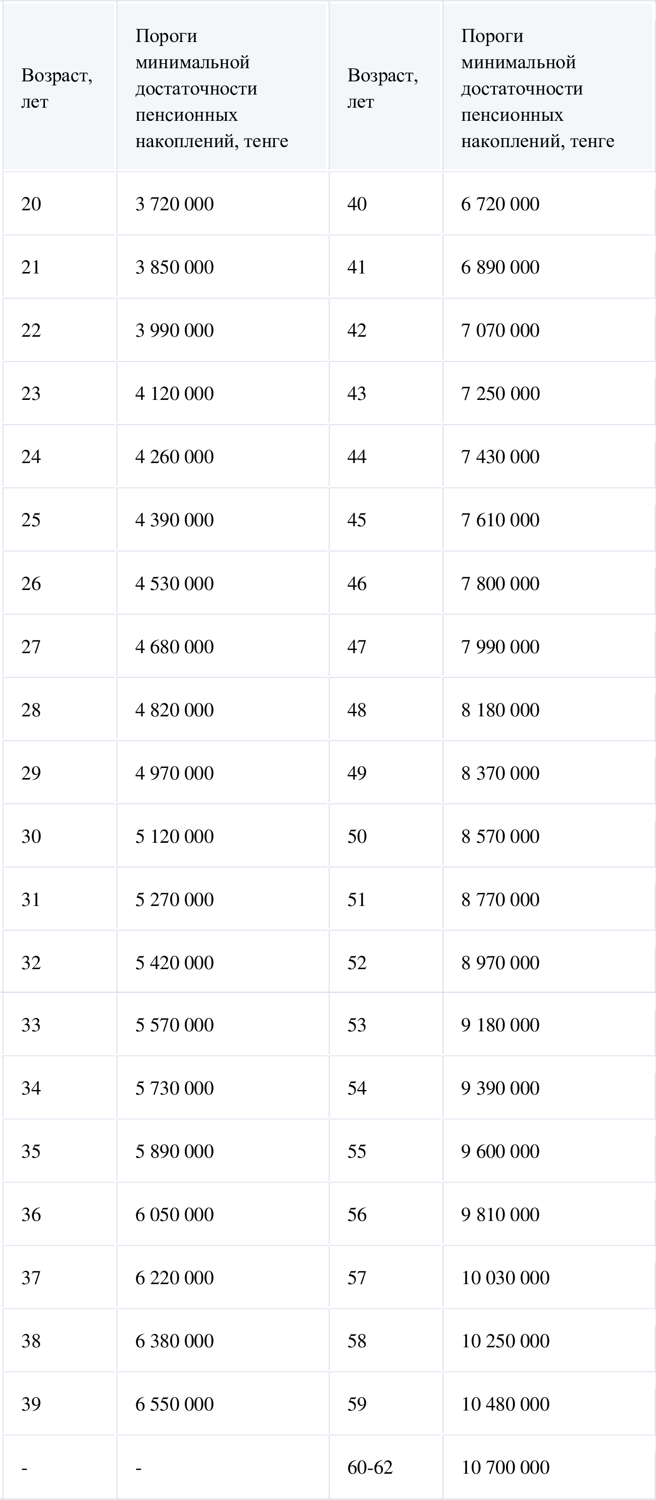 «Кроме показателя инфляции, при расчете порогов, согласно утвержденной методике, используются такие социальные показатели, как минимальный размер заработной платы, минимальный размер государственной базовой пенсионной выплаты, минимальный размер пенсии и прожиточный минимум», - рассказал управляющий директор АО «ЕНПФ» Мурат Шарипов.